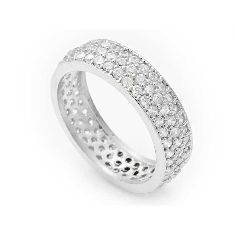 Gümüş 3 Sıra Beyaz Tamtur Bayan Alyans Yüzük