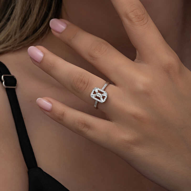 ?Gümüş Baget Taşlı Kadın Yüzük