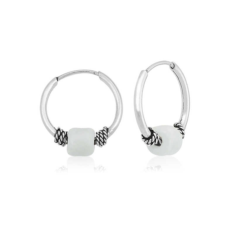 ?Gümüş Beyaz Taşlı Halka Küpe