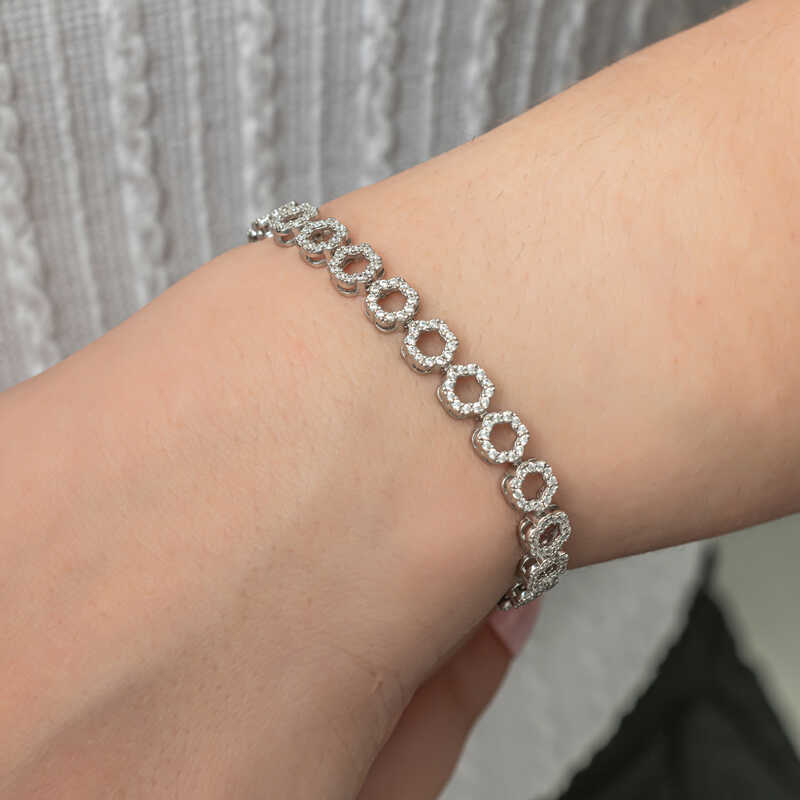 Gümüş Çember Beyaz Taşlı Su Yolu Kadın Bileklik