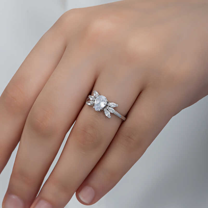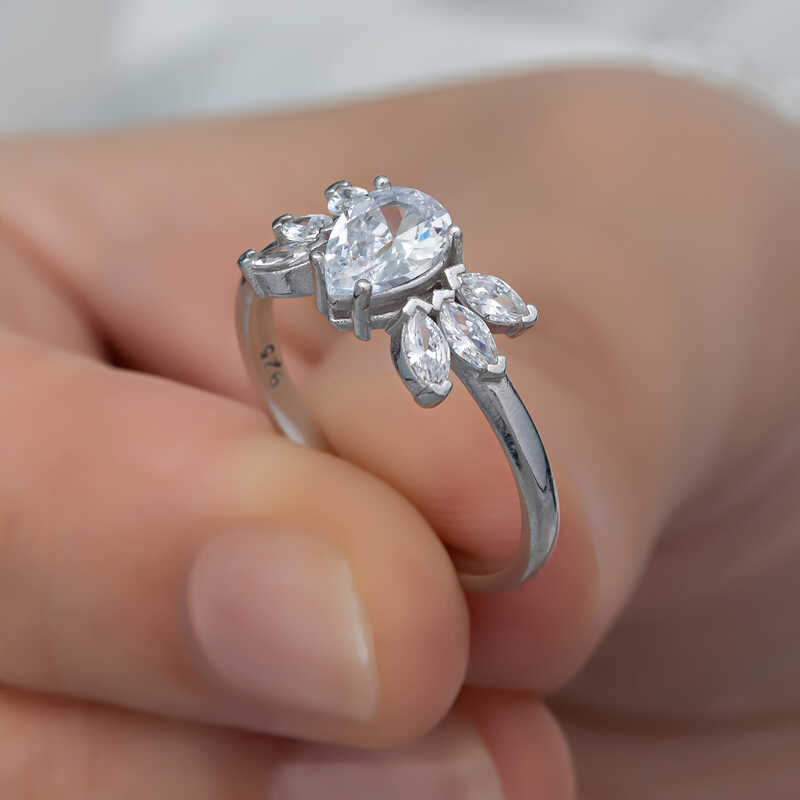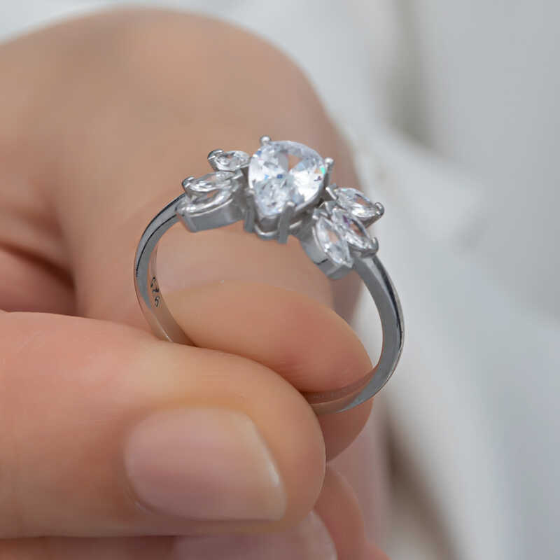 Gümüş Damla Zirkon Taşlı Kadın Yüzük