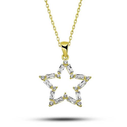 ?Gümüş Gold Baget Taşlı Yıldız Kadın Kolye