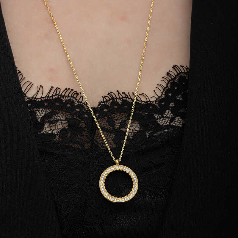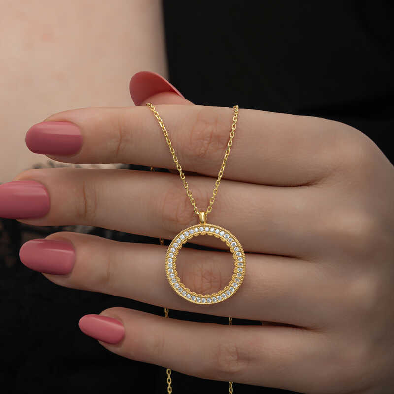 Yuvarlak form deseniyle şıklığı ifade eden gümüş çeyrek altın takılabilen kolye modeli ile sevginiz, sevdiğiniz kadının teninde hayat bulsun. Genç sevgililerin ve kendini genç hissedenlerin özel günlerde de seçebileceği bu kadın kolye modeli ile sevdiğinizin bileğini aşkla süsleyin. Sizin olduğu kadar sevdiklerinizin de keyifle takacağı kadın kolye sevdiğinize en güzel hediyelerden biri olacaktır. Bu kadın kolye modeli 925 ayar gümüşten imal edilmiştir. Gümüş üzerine altın kaplama yapılmıştır. Altın kaplama yapılan gümüş kadın kolye modelleri parlaklığını uzun süre muhafaza eder ve oksitlenmesi gecikir. kolye üzerinde bulunan beyaz taşlar zirkondur. Tüm kadın kolye modellerinde olduğu gibi gümüş kadın kolye modeli de el emeği ile üretilmiştir. Gümüş ve değerli taşlar nedeniyle belirtilen ortalama ürün ağırlığında ± %10 sapma olabilmektedir.