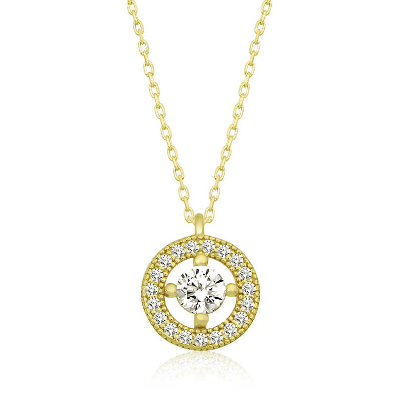 Gümüş Gold Minimal Yuvarlak Tek Taş Kadın Kolye