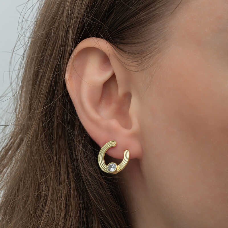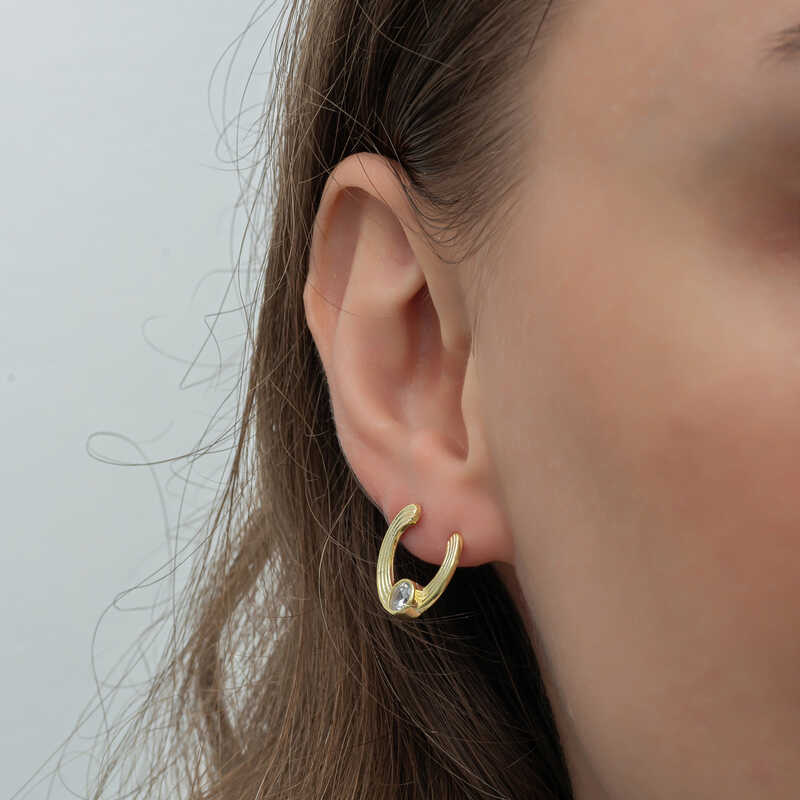 Gümüş Gold Tektaş Halka Kadın Çivili Küpe