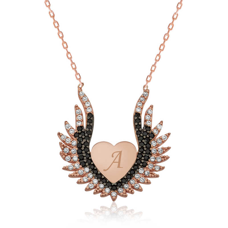 Melekler saflığın ve temizliğin simgeleridir. Bu nedenle melek kolye hediye edilen kişiye melek kadar saf ve temiz olduğu mesajı verilmektedir... Aşkınızı meleklerin koruması için tasarlanan bu özel kalpli melek kanadı bayan kolye; sevdiğinize doğum günü, sevgililer günü ya da özel günlerde hediye ederek onları mutlu edebilirsiniz. Kolye 925 ayar gümüşten imal edilmiştir. Tasarım kalpli melek kanadı bayan kolye üzerinde bulunan taşlar zirkondur. Bu bayan gümüş kolye üzerine rose kaplama yapılmıştır. Rose kaplama yapılan tüm gümüş kolyeler parlaklığını uzun süre muhafaza eder, gümüşe pembe rengi verir. Tüm gümüş kolyelerde olduğu gibi bu gümüş kalpli melek kanadı bayan kolye modeli de el emeği ile üretilmiştir. Gümüş ve değerli taşlar nedeniyle belirtilen ortalama ürün ağırlığında ± %10 sapma olabilmektedir.