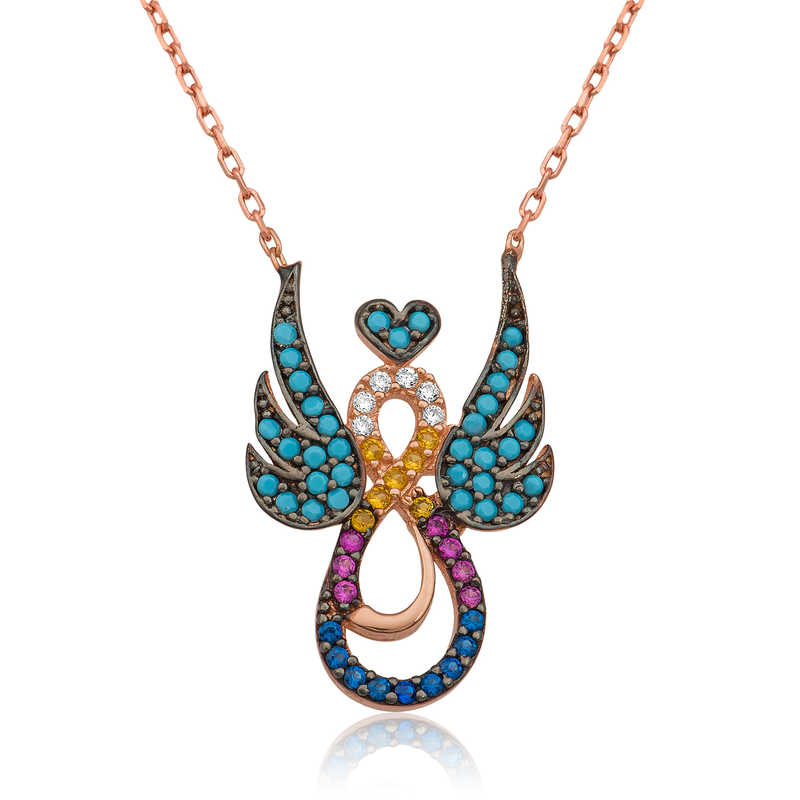 Sonsuza kadar sürecek aşkı sevdiğinize anlatmanın en güzel yollarından biri de sonsuzluk sembolüdür. Kanatlı sonsuzluk sembolü ebedi aşkın ve sadakatin işareti olarak evlilik yıl dönümü veya sevgililer günü gibi özel günlerde alınabilecek anlamlı hediyelerinden biri olabilecektir. Bu şık kolye modeli 925 ayar gümüşten imal edilmiştir. Gümüş üzerine rose altın kaplama yapılmıştır. Rose altın kaplama yapılan gümüş kolye modelleri parlaklığını uzun süre muhafaza eder. Zincir uzunluğu 45 m'dir. Ürünlerimizin tamamında olduğu gibi Gümüş Kanatlı Sonsuz Aşk Kolye modeli de el emeği ile üretilmiştir. Gümüş ve değerli taşlar nedeniyle belirtilen ortalama ürün ağırlığında ± %10 sapma olabilmektedir.