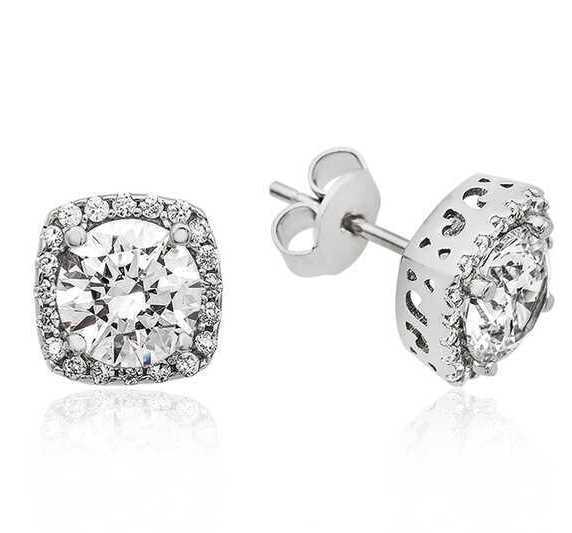 ?Gümüş Kare Montür Pırlanta Modeli Küpe