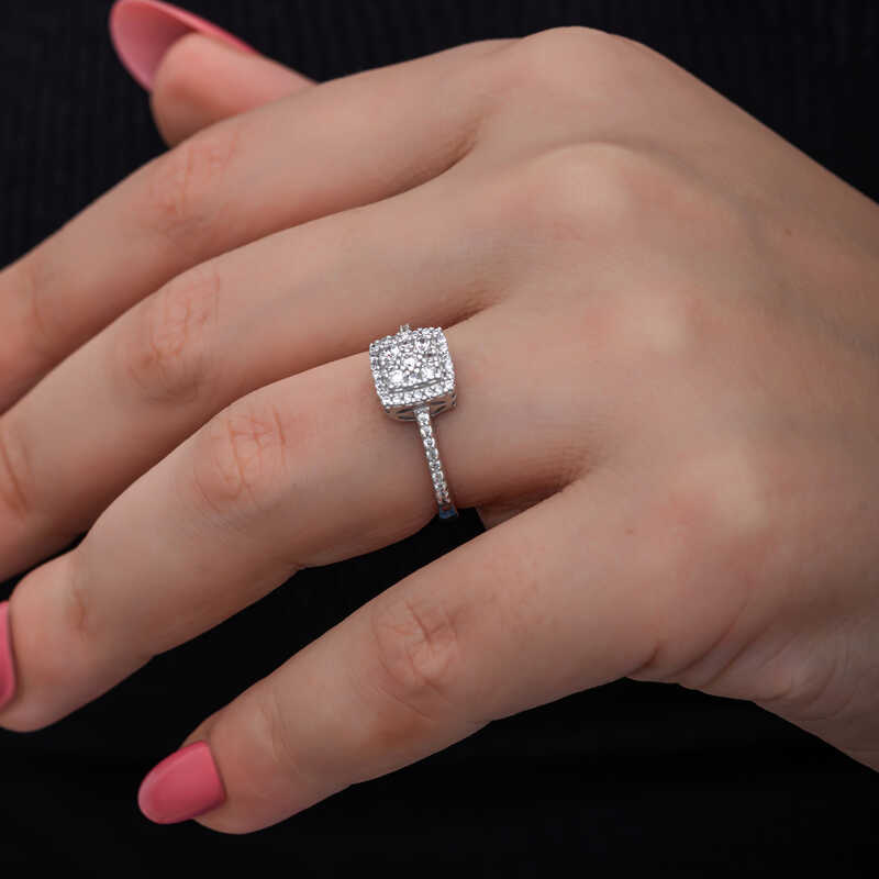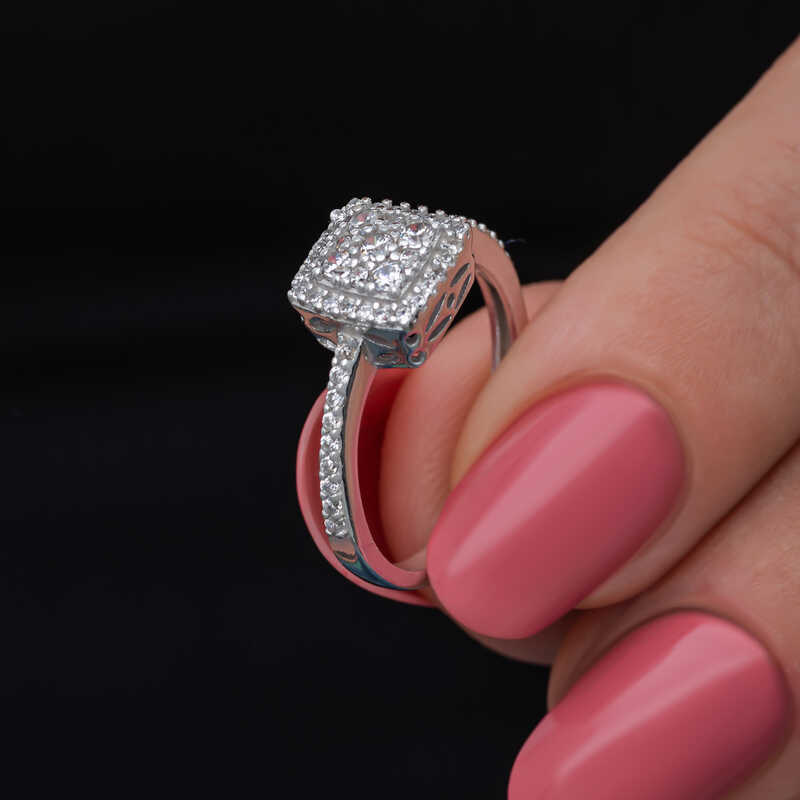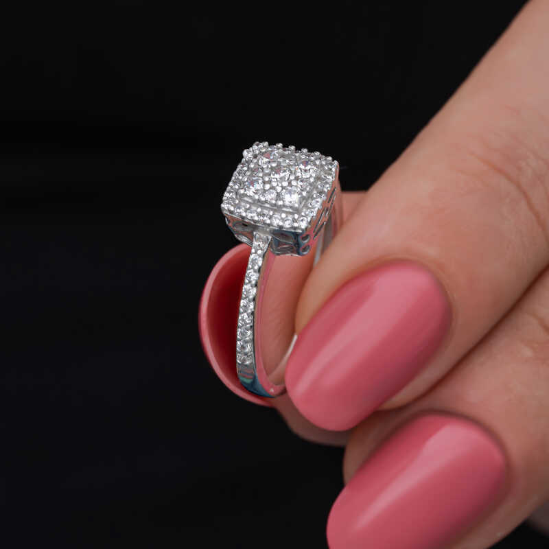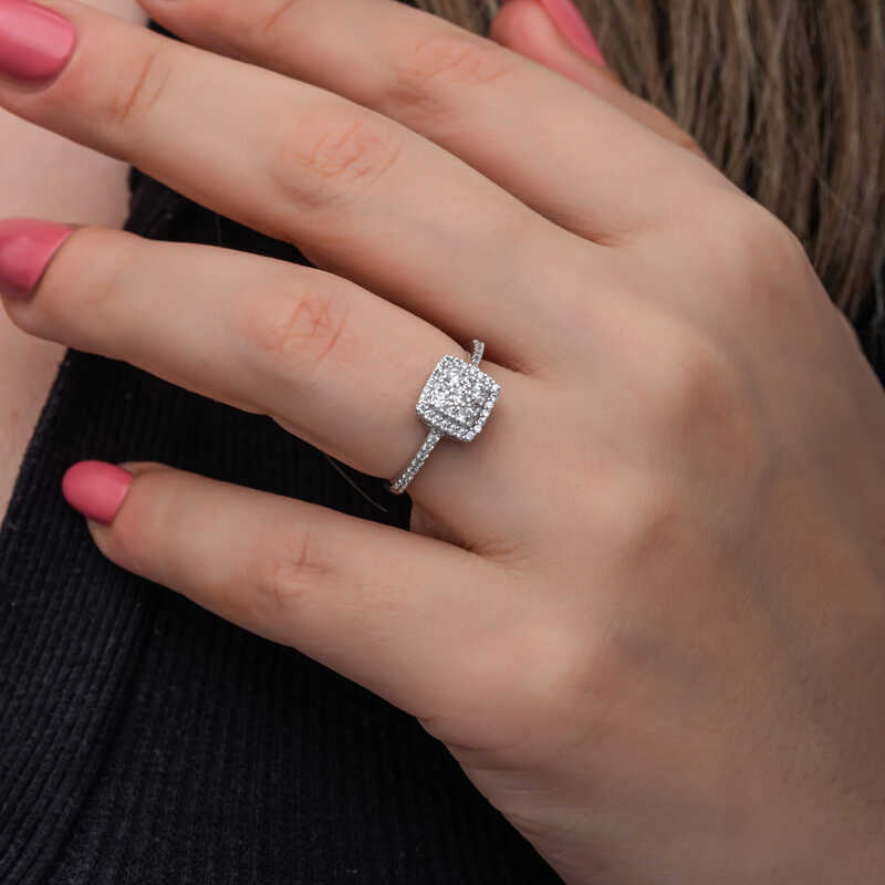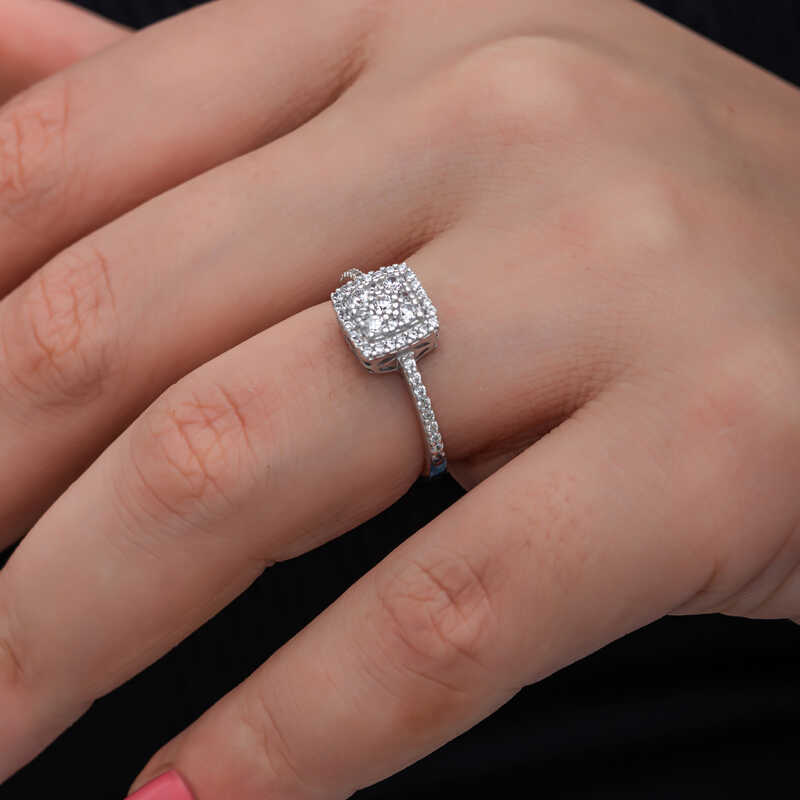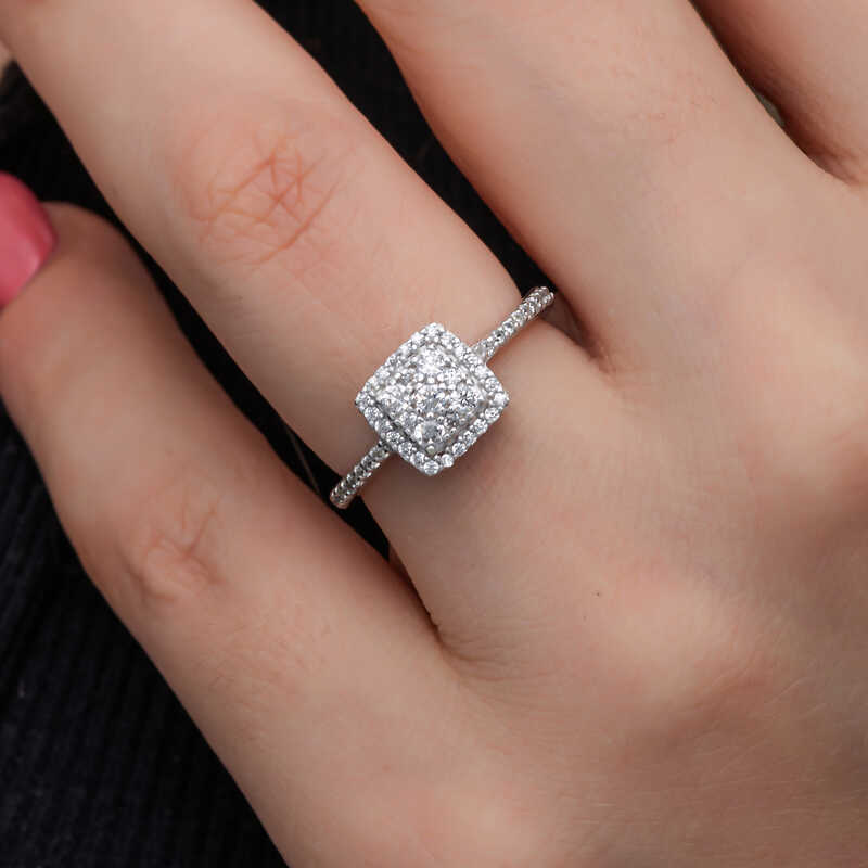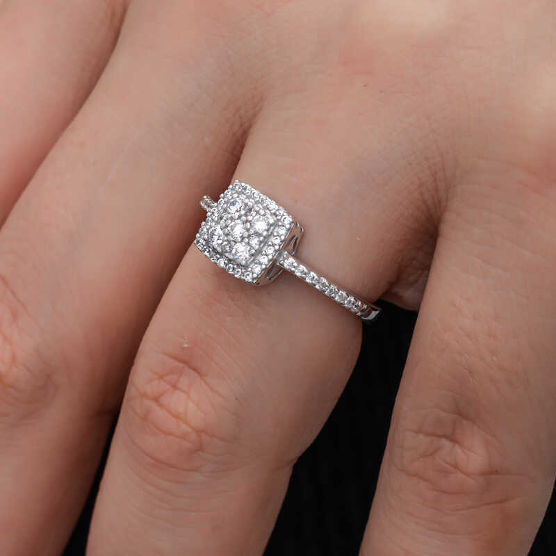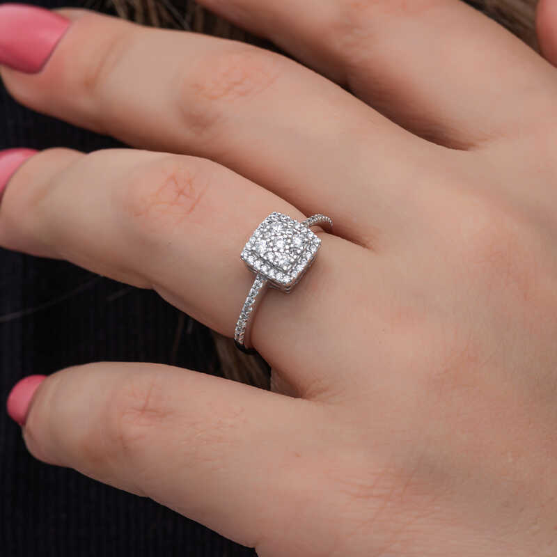 Gümüş Kare Zirkon Taşlı Kadın Yüzük