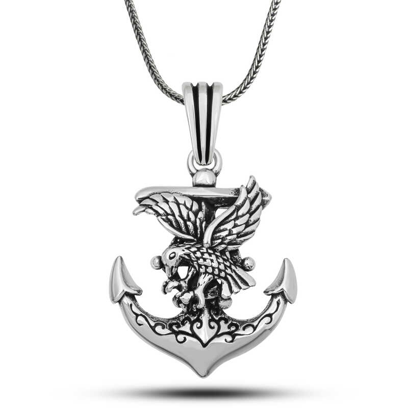?Gümüş Kartal Figürlü Deniz Çapası Kolye