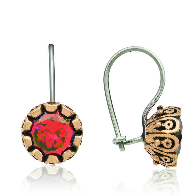 Gümüş Kırmızı Yuvarlak Otantik Kadın Küpe