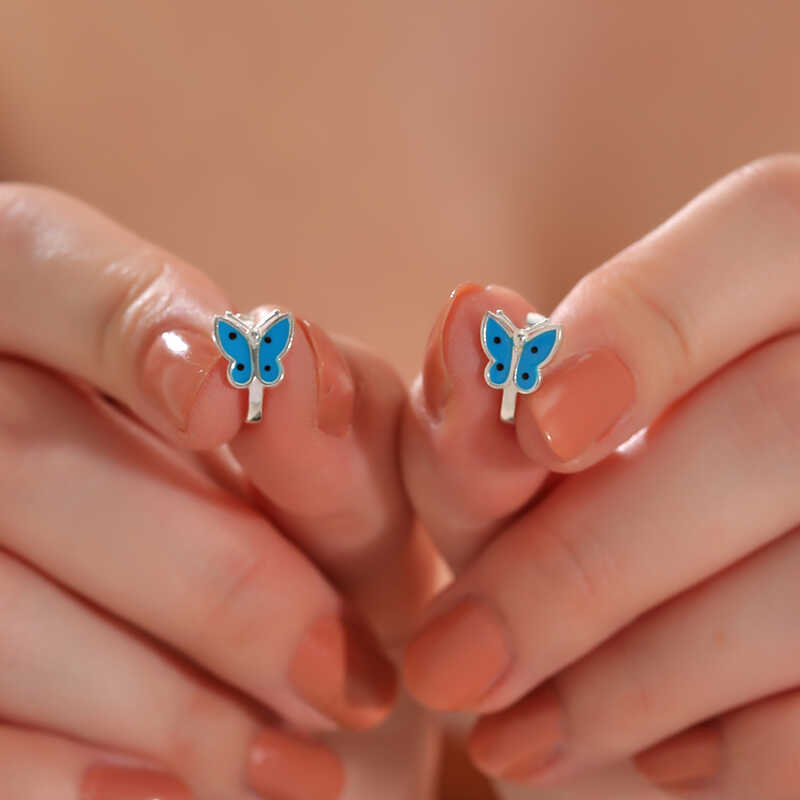 Gümüş Mavi Kelebek Çocuk Küpesi