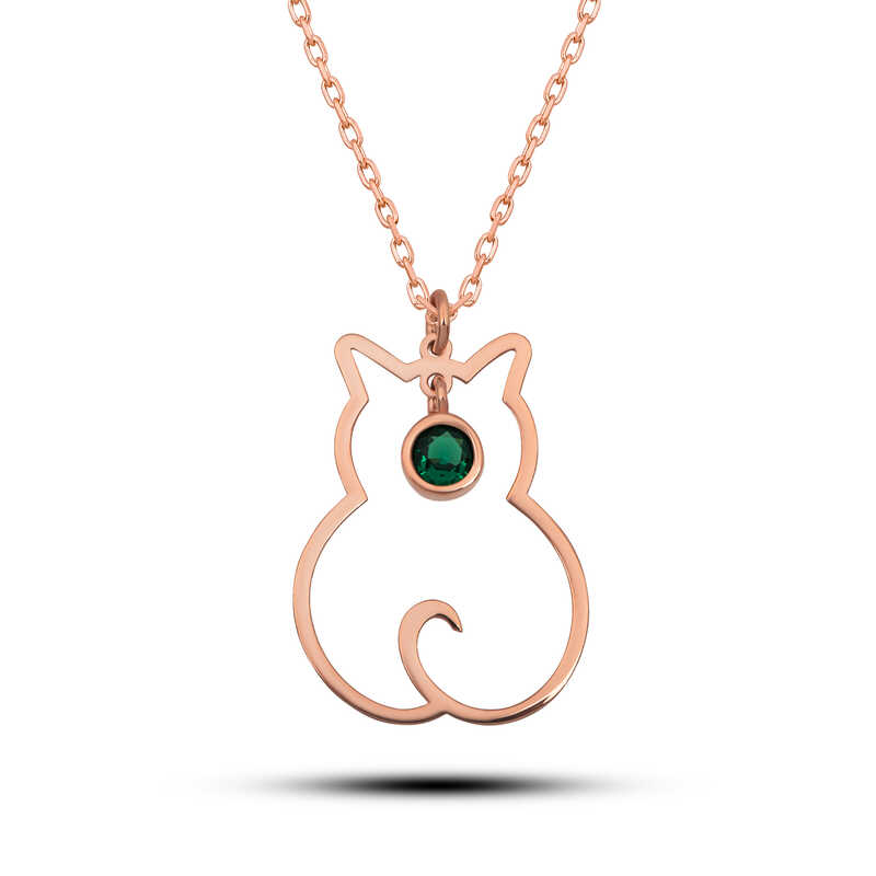 Her bir doğum taşı, belli bir ayla özdeşleşmiştir. Zümrüt mayıs ayı doğum taşıdır. Yenilenmeyi, baharı ve gençliği temsil eder. Zümrüt kullananlara öngörü ve iyi şans getirir. Evlerimizin sevimli neşe kaynağı kediler, temiz olmalarının yanı sıra masumiyetin simgesidir. Asil ve mantıklı bir kişiliğe, mükemmel sezgilere ve akılcı bir duyarlılığa sahiptirler. Özel günlerin en tercih edilen hediye seçeneklerinden olan gümüş takılar, sevdiklerini mutlu etmek ve onlara her an yanlarında taşıyabilecekleri bir hediye vermek isteyenler için tasarlandı. Masumiyetin simgesi olan kedi figürlü gümüş kolye modelini kız kardeşinize, sevgilinize ya da arkadaşlarınıza armağan edebilirsiniz. Zümrüt taşlı kedi kadın kolye modeli 925 ayar gümüşten imal edilmiştir. Gümüş üzerine rose kaplama yapılmıştır. Rose kaplama yapılan gümüş kedi kolye modelleri parlaklığını uzun süre muhafaza eder ve oksitlenmesi gecikir. Kolye üzerinde bulunan tüm taş zümrüttür. Gümüş olan zincir boyu ortalama 45 cm'dir. Gümüş kadın kedi kolye diğer tüm gümüş kadın kolye modellerinde olduğu gibi el emeği ile üretilmiştir. Gümüş ve değerli taşlar nedeniyle belirtilen ortalama ürün ağırlığında ± %10 sapma olabilmektedir.
