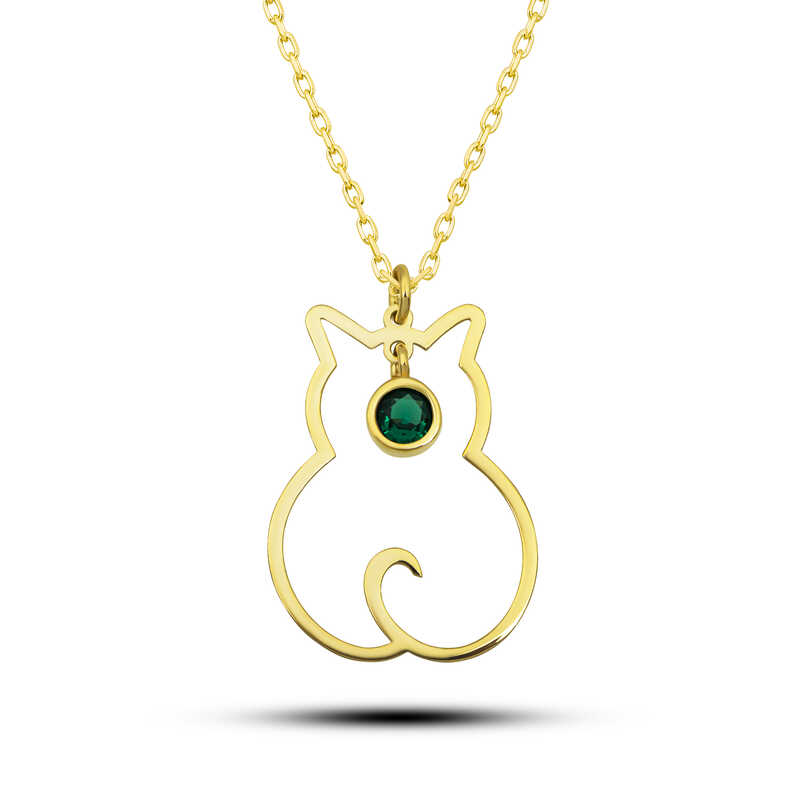 Her bir doğum taşı, belli bir ayla özdeşleşmiştir. Zümrüt mayıs ayı doğum taşıdır. Yenilenmeyi, baharı ve gençliği temsil eder. Zümrüt kullananlara öngörü ve iyi şans getirir. Evlerimizin sevimli neşe kaynağı kediler, temiz olmalarının yanı sıra masumiyetin simgesidir. Asil ve mantıklı bir kişiliğe, mükemmel sezgilere ve akılcı bir duyarlılığa sahiptirler. Özel günlerin en tercih edilen hediye seçeneklerinden olan gümüş takılar, sevdiklerini mutlu etmek ve onlara her an yanlarında taşıyabilecekleri bir hediye vermek isteyenler için tasarlandı. Masumiyetin simgesi olan kedi figürlü gümüş kolye modelini kız kardeşinize, sevgilinize ya da arkadaşlarınıza armağan edebilirsiniz. Zümrüt taşlı kedi kadın kolye modeli 925 ayar gümüşten imal edilmiştir. Gümüş üzerine gold kaplama yapılmıştır. Gold kaplama yapılan gümüş kedi kolye modelleri parlaklığını uzun süre muhafaza eder ve oksitlenmesi gecikir. Kolye üzerinde bulunan tüm taş zümrüttür. Gümüş olan zincir boyu ortalama 45 cm'dir. Gümüş kadın kedi kolye diğer tüm gümüş kadın kolye modellerinde olduğu gibi el emeği ile üretilmiştir. Gümüş ve değerli taşlar nedeniyle belirtilen ortalama ürün ağırlığında ± %10 sapma olabilmektedir.