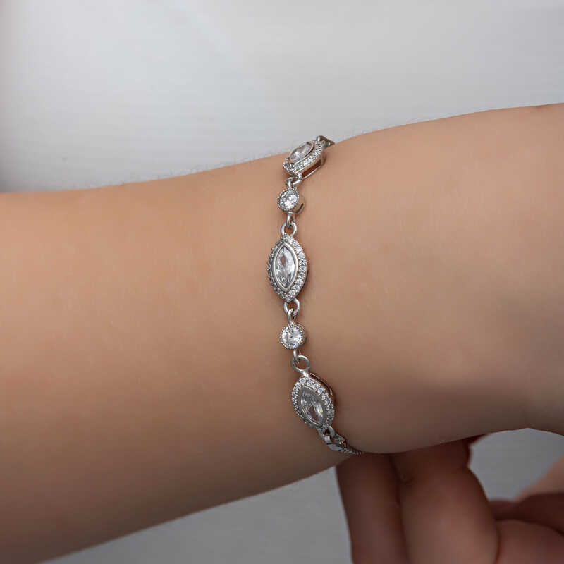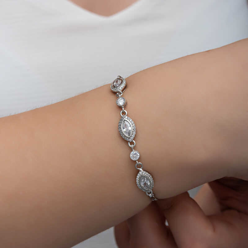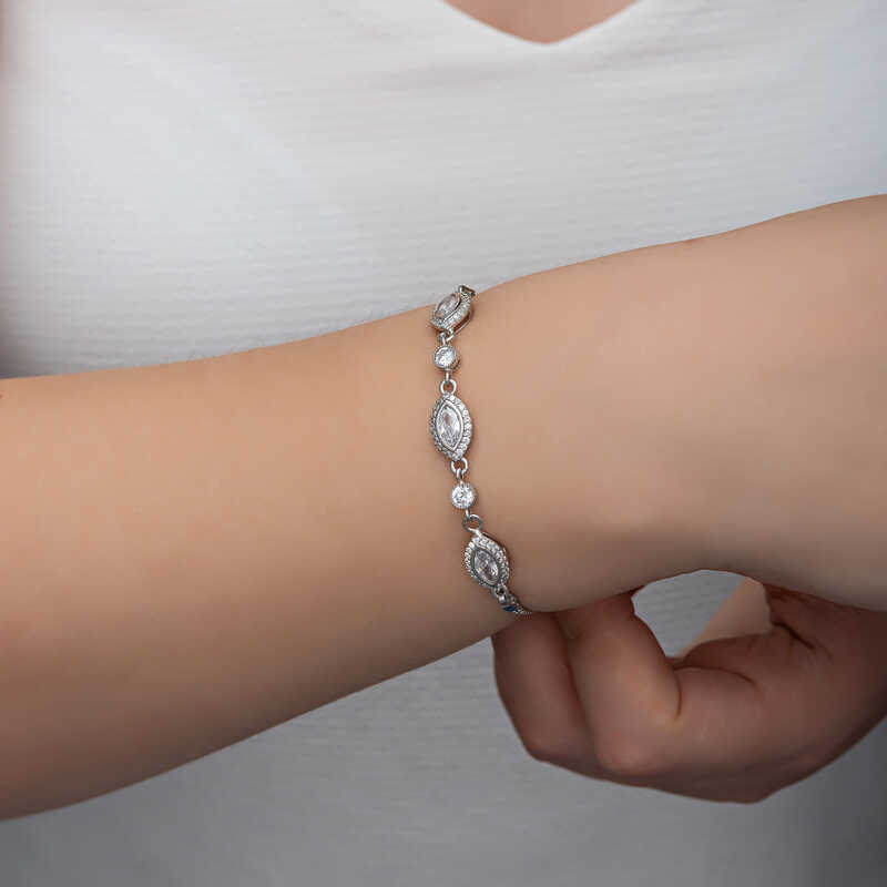 Gümüş Mekik Zirkon Taşlı Kadın Bileklik