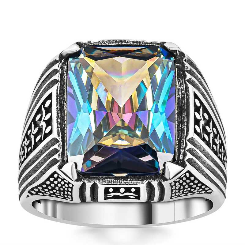 Gümüş Mistik Topaz Kare Erkek Yüzük
