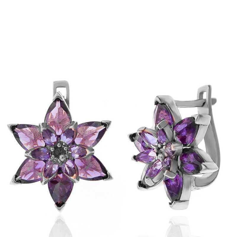 Gümüş Mor Lotus Çiçeği Kadın Küpe