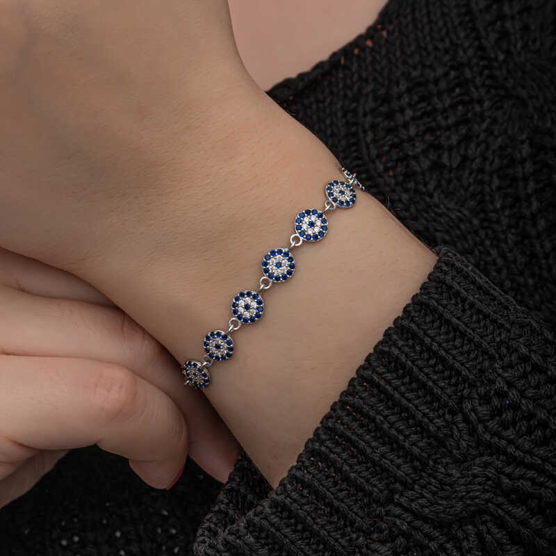 ?Gümüş Nazar Boncuklu Kadın Bileklik