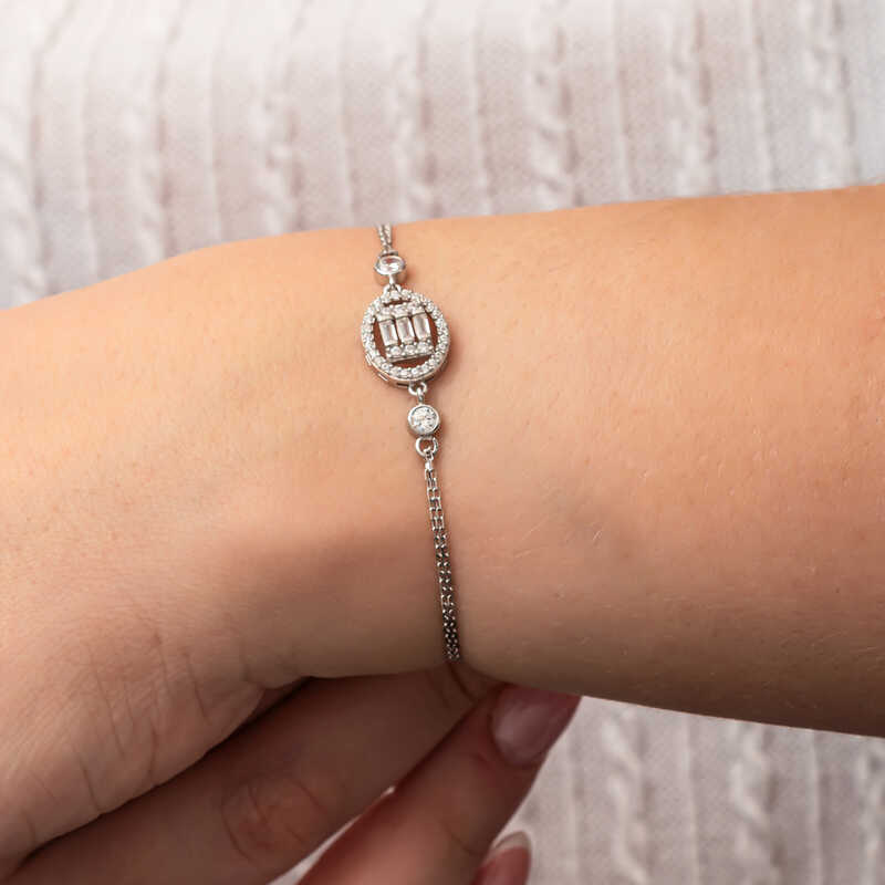 Gümüş Oval Baget Taşlı Kadın Bileklik
