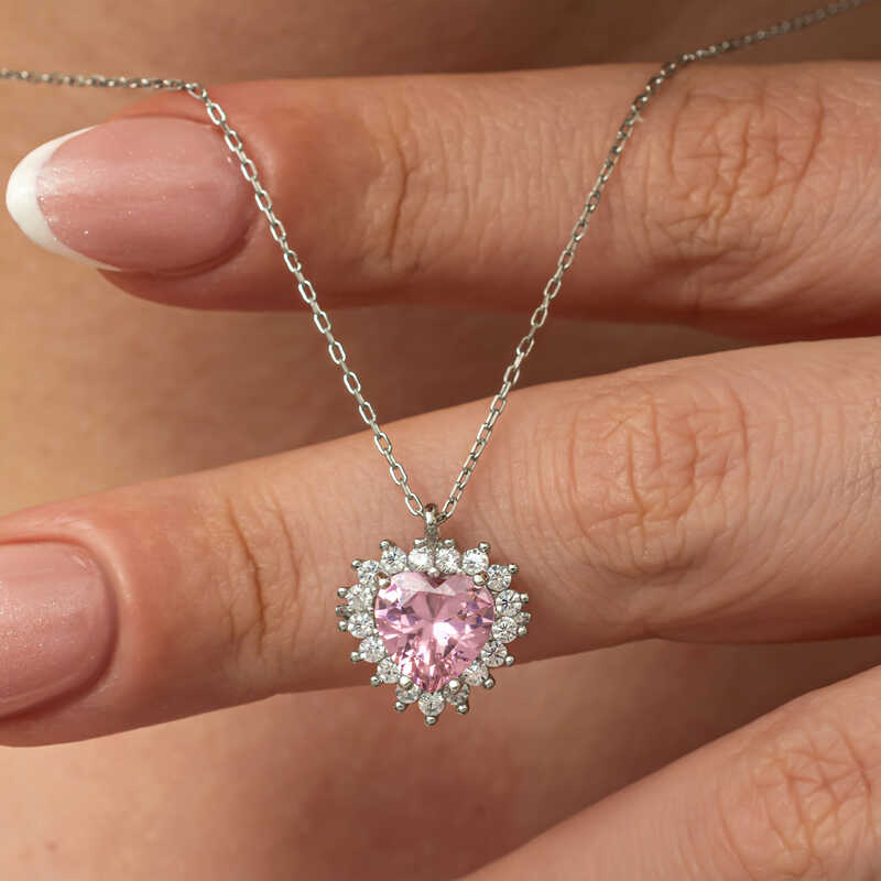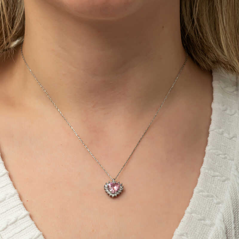 ?Gümüş Pembe Taşlı Kalp Kadın Kolye