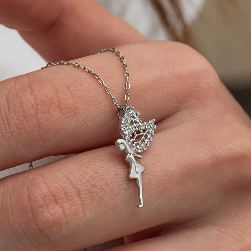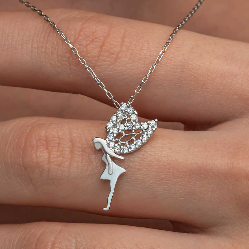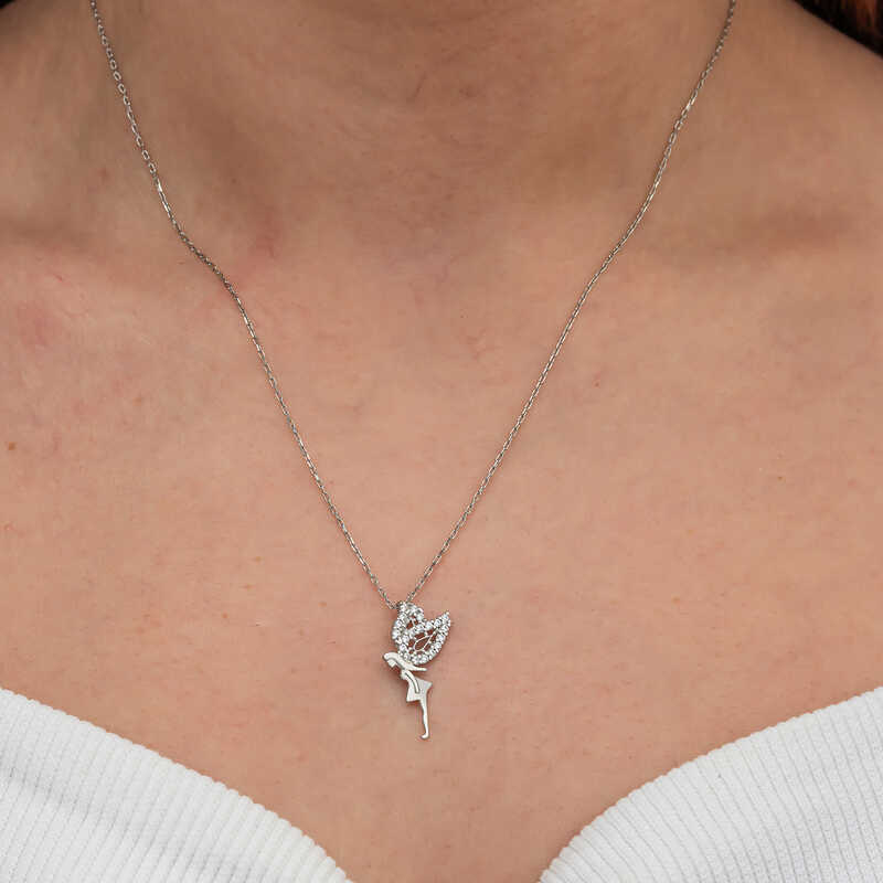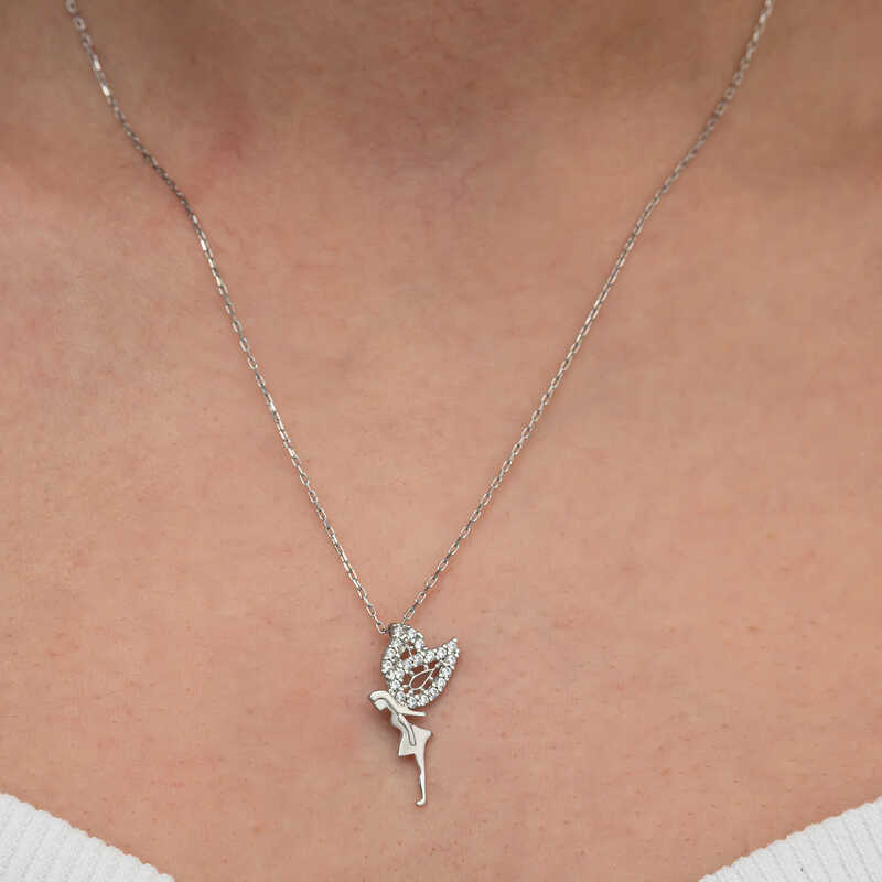 Hayal dünyasının sembolü olan peri kızı figürü ile tasarlanmış bu kolye, hem zarafeti hem de özgünlüğüyle her tarza uyum sağlar.Uçsuz bucaksız bir hayal dünyasının kapılarını aralamak için Peri kızı kadın kolyeyi sevdiklerinize hediye etmek için mükemmel bir seçenektir.Gümüş üzerine rodyum kaplama yapılmıştır.Rodyum kaplama yapılan kolyeler parlaklığını uzun süre muhafaza eder ve oksitlenmesi gecikir.Gümüş ve değerli taşlar nedeniyle belirtilen ortalama ürün ağırlığında ± %10 sapma olabilmektedir.