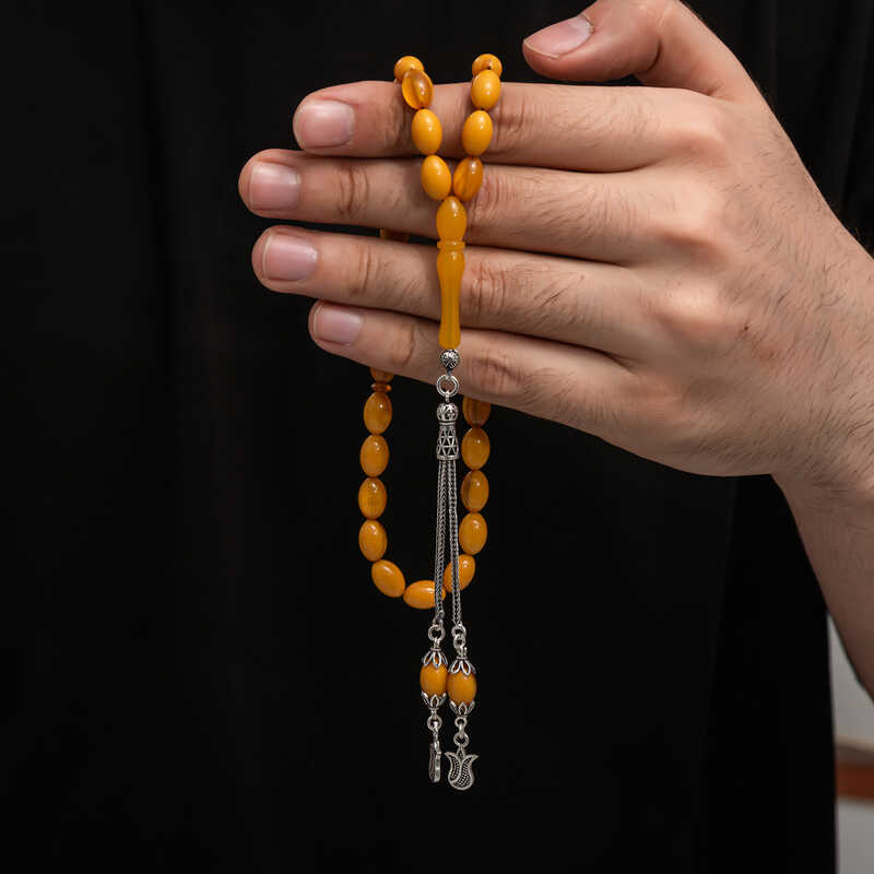 ?Gümüş Püskül Sıkma Kehribar Tesbih
