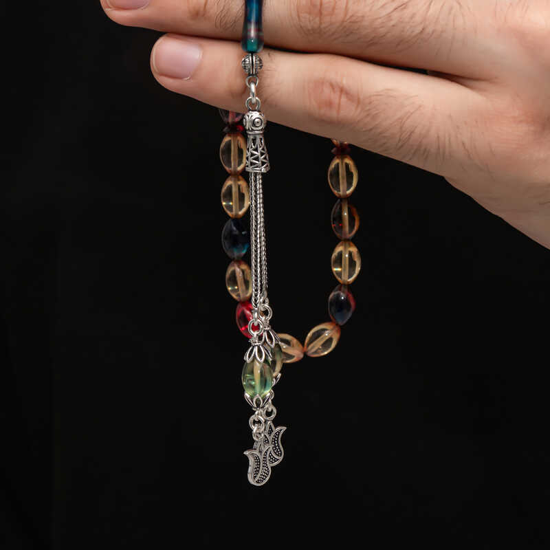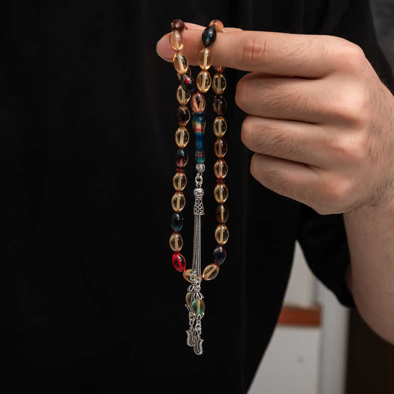 ?Gümüş Püskül Sıkma Kehribar Tesbih