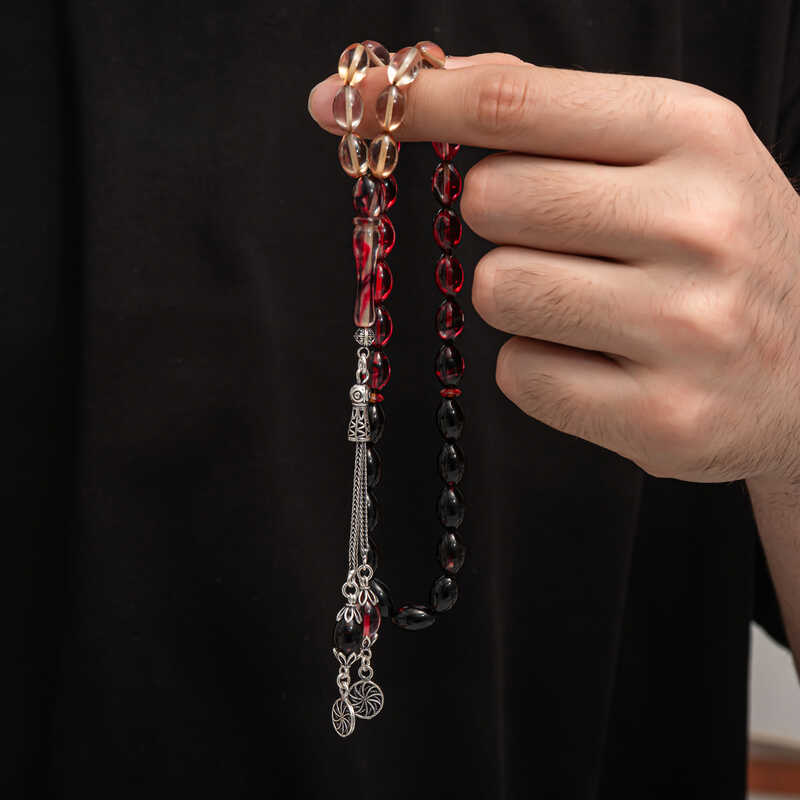 ?Gümüş Püskül Sıkma Kehribar Tesbih