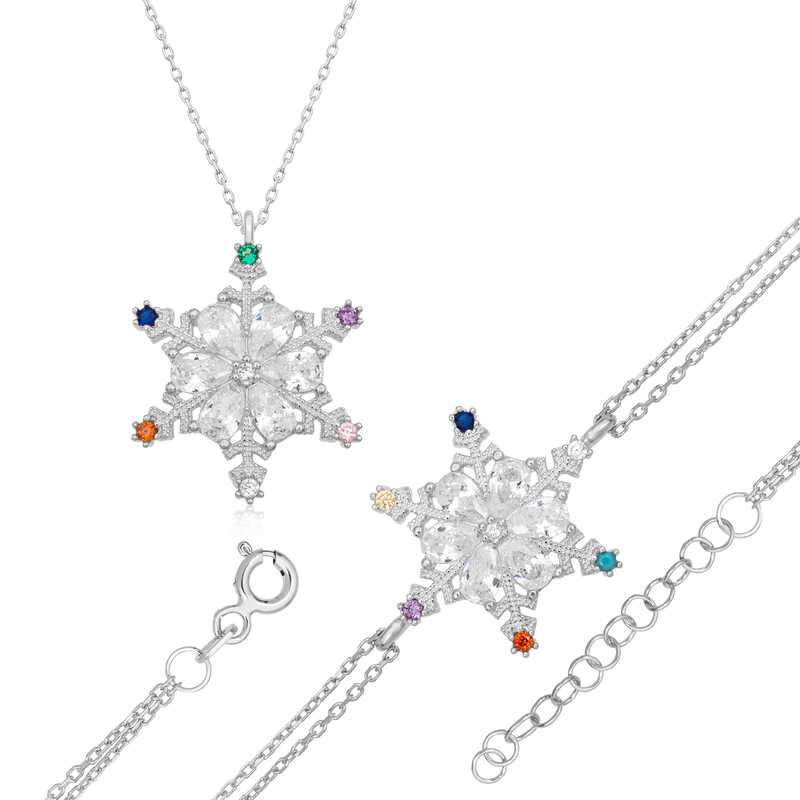 Gümüş Renkli Taşlı Kar Tanesi Kadın Set