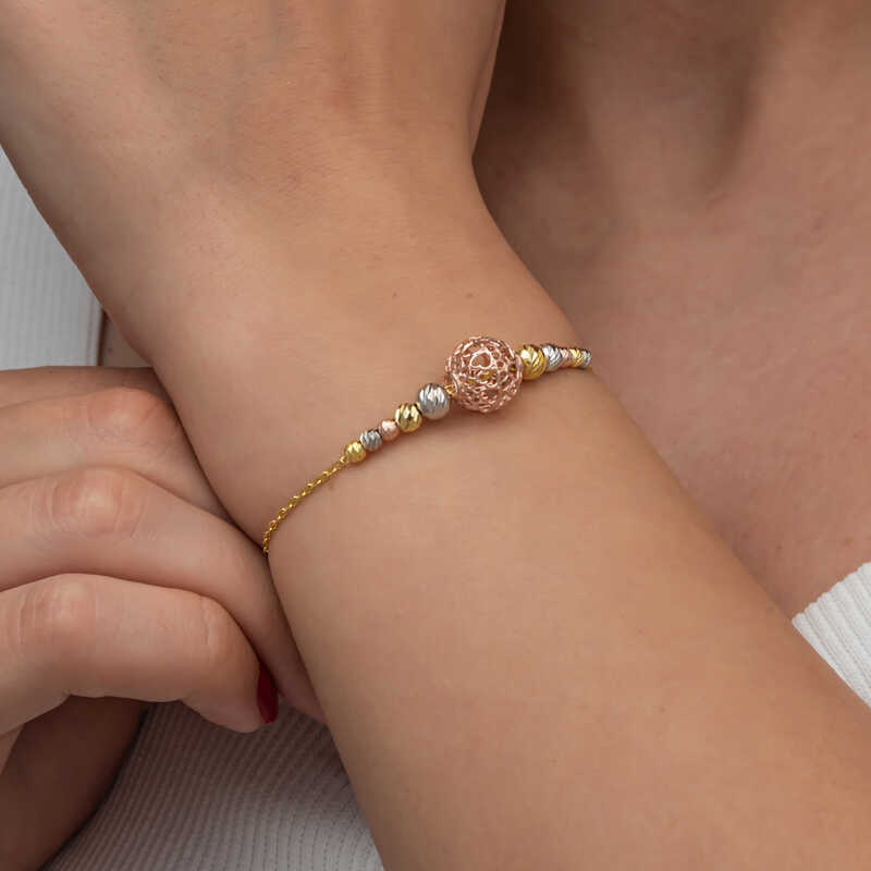 Renkli top dorika bileklik, çeşitli renk ve desenlerdeki top şeklindeki boncukların bir araya getirilerek oluşturduğu şık ve hareketli bir bilekliktir.Gümüş üzerine rodyum,rose,gold kaplama yapılmıştır.Bu şık bileklik; doğum günü hediyesi, sevgililer günü hediyesi veya annelere hediye olarak özel günlerde tercih edilebilecek mükemmel bir seçenektir. Bileklik, 925 ayar gümüşten imal edilmiştir.Tüm gümüş bilekliklerde olduğu gibi bu gümüş renkli dorika kadın bileklik de tamamı el emeği ile üretilmiştir. Gümüş ve değerli taşlar nedeniyle belirtilen ortalama ürün ağırlığında ± %10 sapma olabilmektedir.