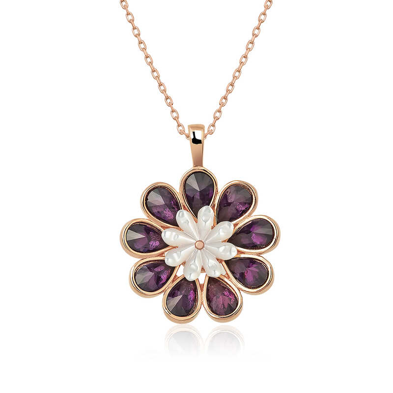 ?Gümüş Rose Erguvan Çiçeği Kolye