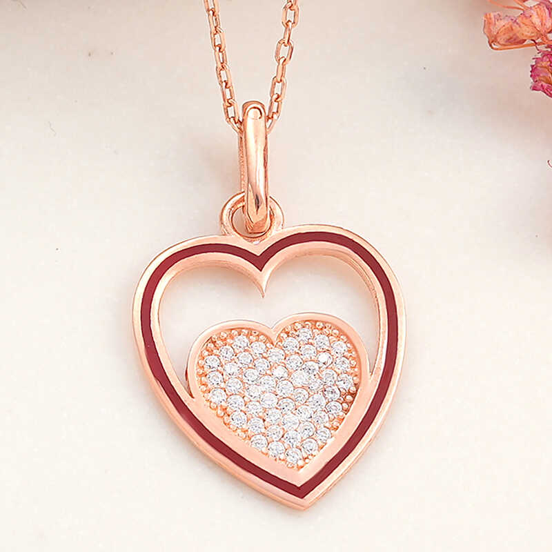 ?Gümüş Rose Kalp Kadın Kolye