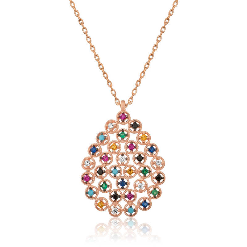 ??Gümüş Rose Renkli Taşlı Damla Kolye