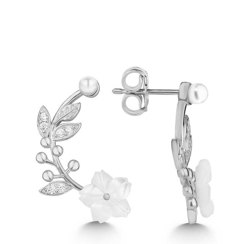 Gümüş Sedef Çiçek Çivili Kadın Küpe