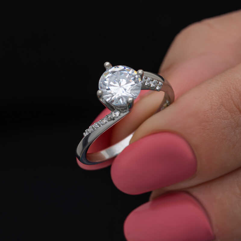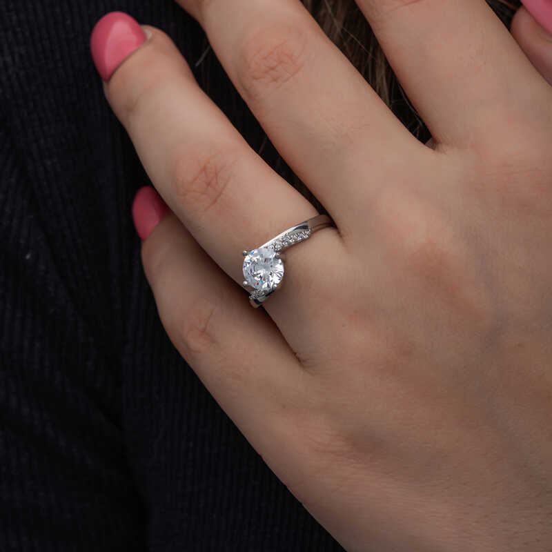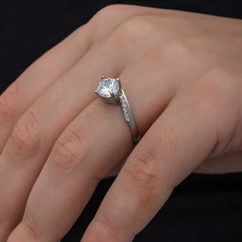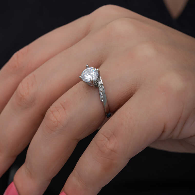 Bu özel tasarım tek taş yüzük 925 ayar gümüşten imal edilmiştir. Gümüş üzerine rodyum kaplama yapılmıştır. Rodyum kaplama yapılan kadın gümüş yüzük modelleri parlaklığını uzun süre muhafaza eder, oksitlenmesi gecikir. Yüzük üzerinde bulunan taşlar zirkondur. Sevdiğinize doğum günü, sevgililer günü ve özel günlerde verebileceğiniz mükemmel bir hediye seçeneğidir. Gümüş kadın yüzük modellerimizin tamamında olduğu gibi bu tek taş kadın yüzük de tamamen el emeği ile üretilmiştir. Gümüş ve değerli taşlar nedeniyle belirtilen ortalama ürün ağırlığında ± %10 sapma olabilmektedir.