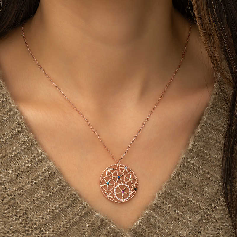 Yaşam çiçeği, iç içe geçmiş eşit alana sahip çok sayıda çember ve dışında büyük bir çemberden oluşan geometrik şekilden oluşmaktadır. Her bir çemberin merkezi, çevresindeki çemberin çevrelerinin kesiştiği yerdedir. Drunvalo Melchizedek bu sembolün evrenin ve yaşamın sırlarını barındırdığını iddia etmektedir. Günün her anında severek kullanabileceğiniz hoş bir aksesuardır. Gümüş yaşam çiçeği bayan kolye 925 ayar gümüşten imal edilmiştir. Bu kolye üzerine rose kaplama yapılmıştır.Rose kaplama yapılan ürünler parlaklığını uzun süre muhafaza eder ve gümüşü bakır rengine dönüştürür. Tüm gümüş bayan kolye modellerinde olduğu gibi gümüş yaşam çiçeği bayan kolye modeli de el emeği ile üretilmiştir. Gümüş ve değerli taşlar nedeniyle belirtilen ortalama ürün ağırlığında ± %10 sapma olabilmektedir. Ürünlerimizin tamamı el emeği ile üretilmiştir.