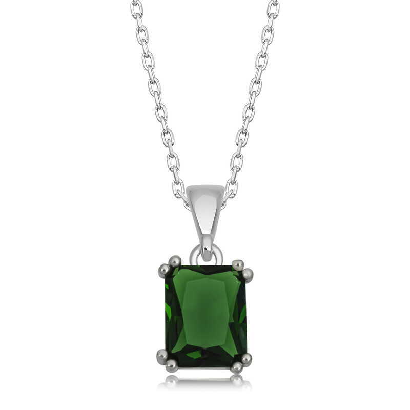 Gümüş Yeşil Kristal Kare Taşlı Kadın Kolye